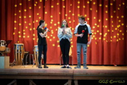 Der 10. Jahrgang sang gemeinsam das Lied „Last christmas“ von Wham. Spontan trug Maximilian Reinhold ein Weihnachtslied am Klavier vor und erhielt dafür großen Applaus von seinen fast 400 Mitschülern und Mitschülerinnen. Die Moderation übernahm Maxi Evers und bat alle darum, an der Gemeinschaft der Schule weiterhin zu arbeiten. Ein besonderer Dank soll hier noch an die Tontechnik – AG unter der Leitung von Tommy gehen, die dafür sorgte, dass alles lief wie am Schnürchen.