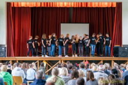 Weiter ging es mit Partisanen- und Protestsongs, deren Hintergrundgeschichten vielen zwar unbekannt war, nicht jedoch deren Musik. Und so gelang es recht schnell „Bella ciao“ und „Another brick in the wall“ gemeinsam zu musizieren. Leider blieb keine Zeit mehr, aus unseren eigenen Worten unseren Demokratie-Song zu entwickeln. Aber die Sammlung der Worte, aus denen dieser Song bestehen könnte, die wuchs im laufe des Vormittags mit jedem Lied. Und so ist ein Anfang getan…